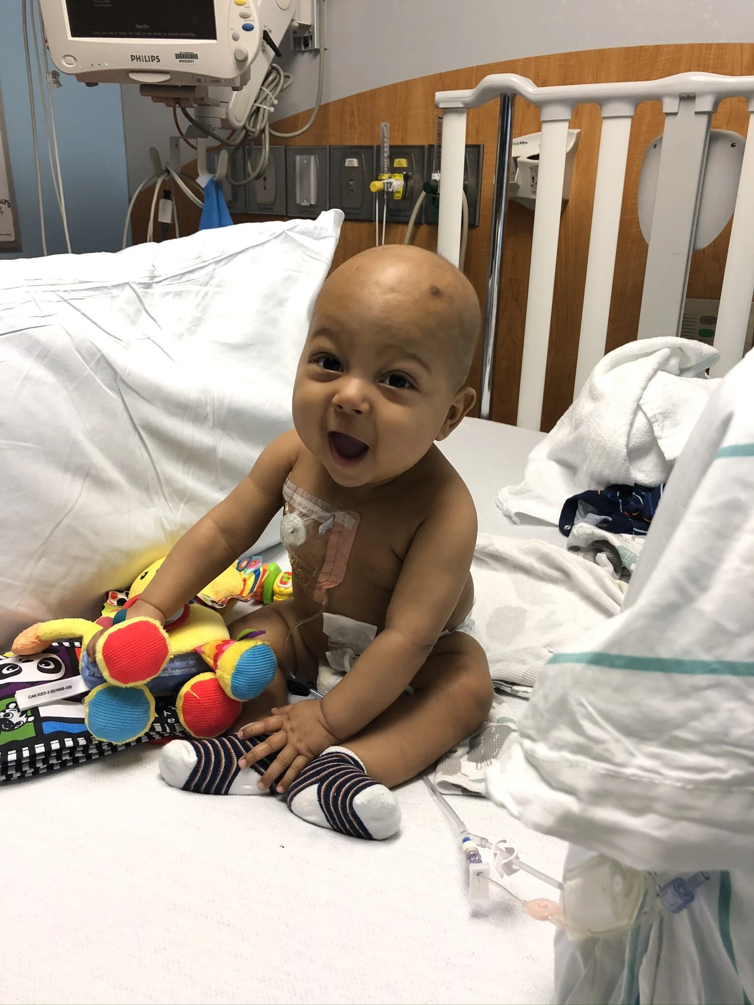 Luca spent his first few days of life away from mommy and daddy in the NICU. At five days old, he underwent surgery to remove the unknown lump. Post operation, the surgeon came in and said, “Surgery went well, we removed the tumor and some of the surrounding tissue”, he continued nonchalantly, “it looks to be small, round, blue cell”. I immediately Googled exactly what I heard, ‘small, round, blue cell’. In shock of what I read, I uttered “small, round, blue cell - that’s malignant right?” He replied yes. In that moment, our world seemed to stop spinning.